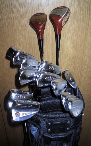 友人の影響で、クラッシッククラブにあこがれた時期があり、本物は高くて買えないので復刻版を使用しています。最近はプロでも、難しいクラブを使わなくなり「チタンウッド」だの「キャビティーアイアン」だのが流行だそうでが、私は現在使用している下記のクラブ構成に満足しています。だから、いつまで経っても上達しないのかも?